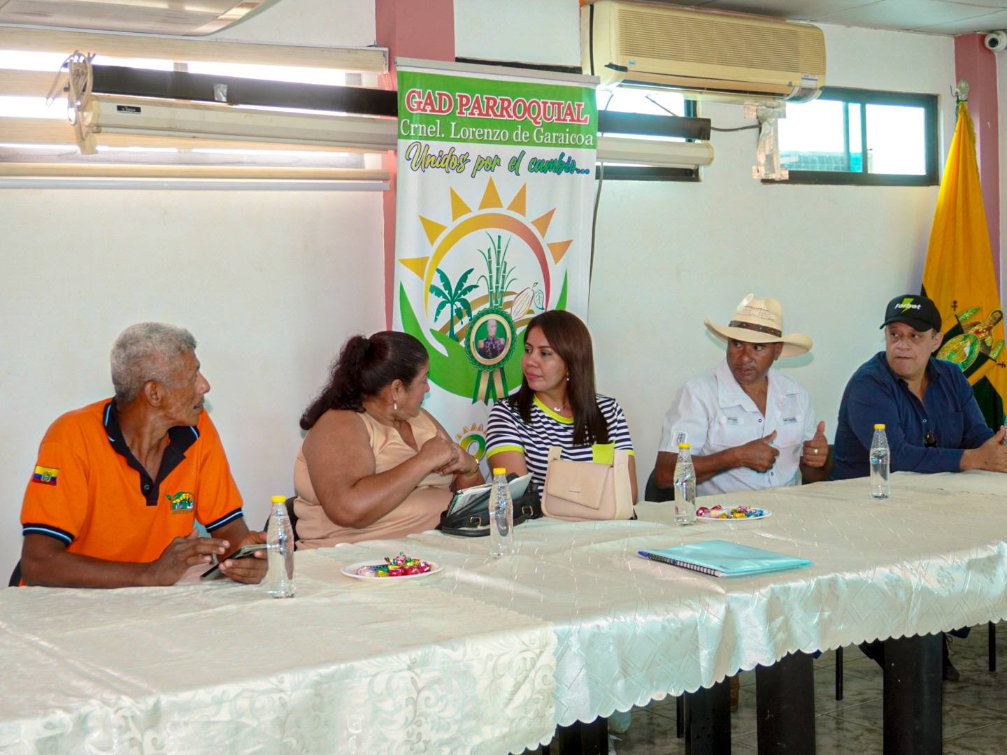 La presidenta de CONAGOPARE Guayas se reunió con el presidente del GAD Parroquial Lorenzo de Garaicoa, Lorenzo Ortiz, y representantes de Asoproaamun Agrícola para coordinar acciones en favor del sector productivo. En este encuentro se acordó que los técnicos de CONAGOPARE realicen estudios que servirán como base para la elaboración de un proyecto que impulse el desarrollo y fortalecimiento de la producción cacaotera en esta zona rural.